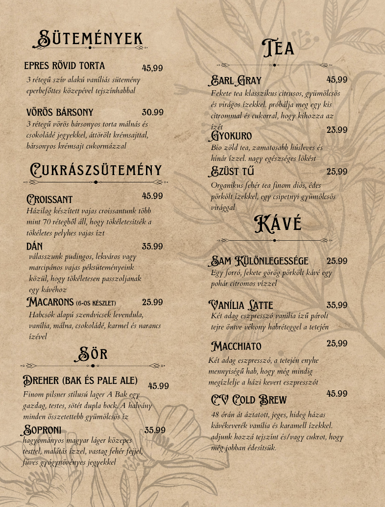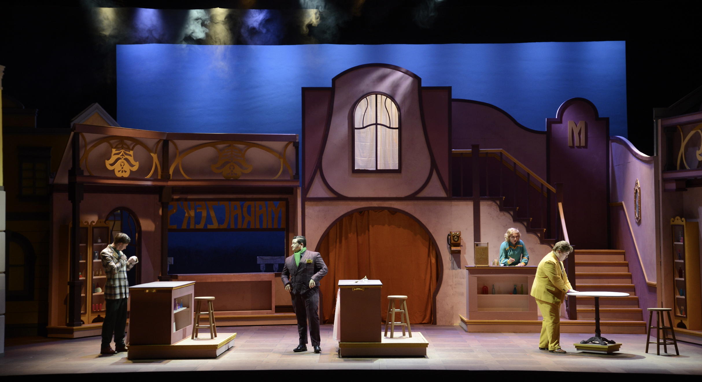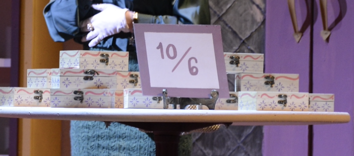 Who doesn't love mystery and romance? She Loves Me is all about the mystery of love and what makes you love someone. Throughout the show, Amila and George are trying to figure out who they are sending anonymous love notes to. Little do they know the person they are in love with is their sworn enemy and co-worker. This was a very prop-heavy show. From trying to find over 100 small vials to fill with paint to look like perfumes, hand painting the Musical cigarette boxes, or even photoshopping a Hungarian cafe menu. Below are some of the props I crafted including the musical cigarette box towers and what they look like inside, the sale sign that went with the boxes. A digital version of the cafe menu that is entirely in Hungarian. Then a handful of the perfume, cream, shampoo, and even ice cream labels that are all in Hungarian.